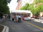 3. This is a festival of consumption as well as celebration, but you also see people who are doing good things for the community. Yes, Hometown Holidays coincides with the Memorial Day weekend, but it is primarily a temporary marketplace. People come out to consume, whether it’s food, music, or merchandise, especially if it’s free. I was astounded that McDonalds would always have a line of two dozen people waiting for 30 minutes in the sun for a free 2-3 oz sample of coffee. Of course, I picked up on this strategy and quickly moved to giving away my postcards of Rockville (note to new candidates: if you are standing with a clipboard and pen in hand, people will imagine you are recruiting a crew for a pirate ship and immediately find a way to stay 25 feet away from you). The ugly aspect is that some folks expect something free unconditionally. Although I was giving away free postcards, a few people wanted my pen, my water bottle, even the decorations in my booth. The great elements were the non-profits and Taste of Rockville sections. The non-profit organizations promoted programs that improved the quality of life in the community, from biking to theater to nutrition to sports to parks to reading to treatment of animals. I was especially impressed by Jackie Price‘s efforts to help end hunger for children. She’s a fourteen-year-old Rockvillian who baked hundreds of cookies for sale and is donating the proceeds to Share Our Strength. And although the Taste of Rockville may have seemed to be simply a promotion for local restaurants, the ticket sales support the Chamber of Commerce and Community Ministries of Rockville.