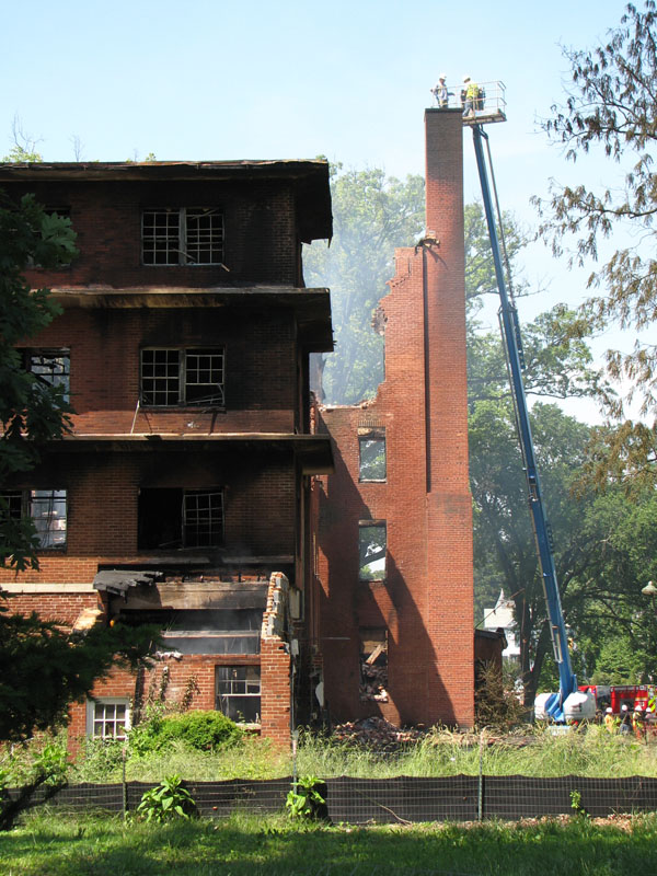 Chestnut Lodge fire, rear elevation (original entrance tower on right).