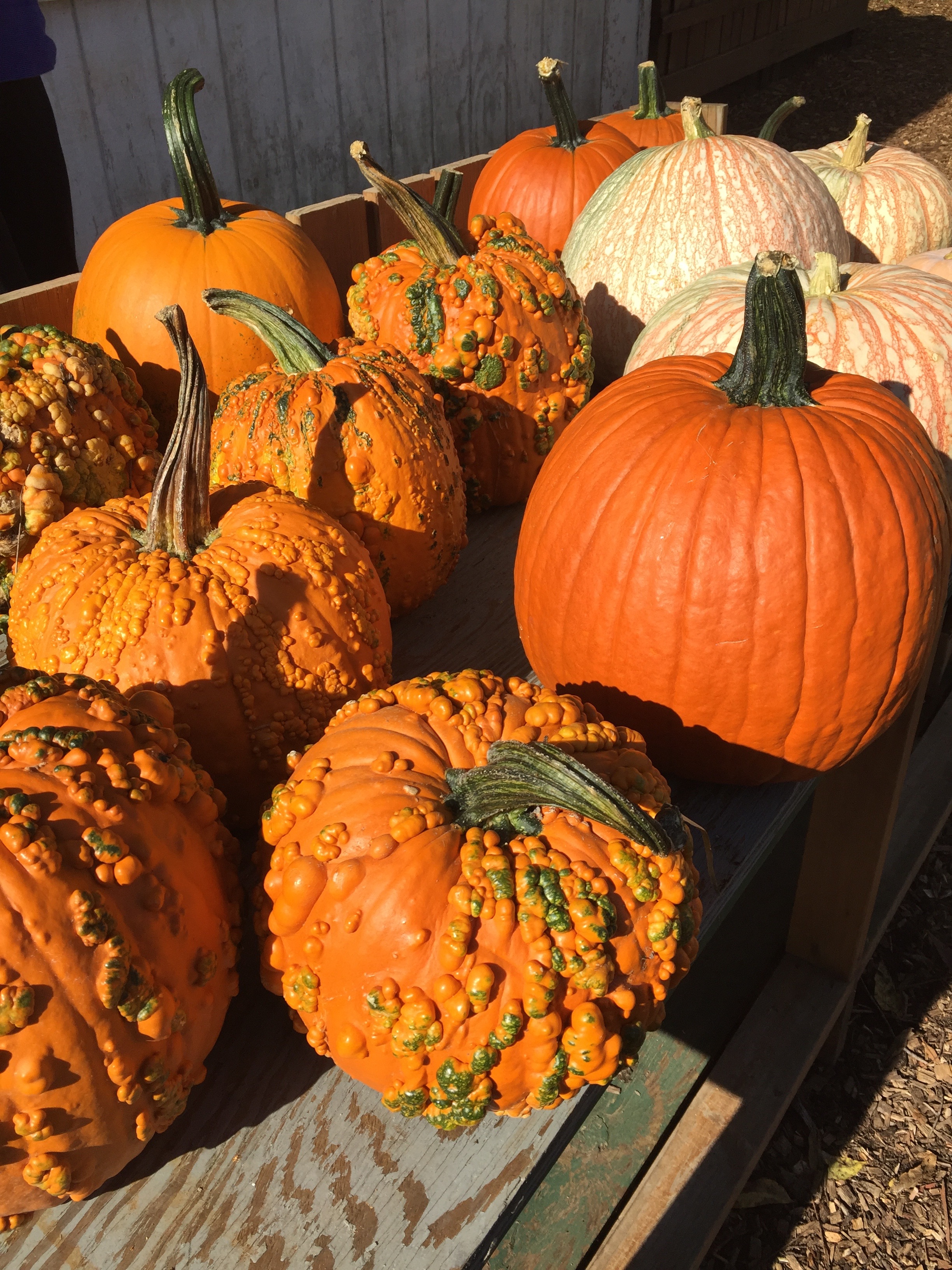 Comus Market in northern Montgomery County, about a 20-30 minute drive north of Rockville. At the corner of Old Hundred Road (109) and Comus Road across from the Comus Inn is a small shed surrounded by tables and bins filled all sorts of strange and wonderful pumpkins and winter squashes, like Blue Hubbard, Sweet Dumpling, or Long Island Cheese. Although these unusual varieties are now appearing in grocery stores like Trader Joes, what you don’t experience is the drive out in the country and a chance to meet David Heisler, the farmer that grows them. A bit further up Comus Road is Sugarloaf Mountain (a short hike for a family) and Sugarloaf Winery (bring a picnic).