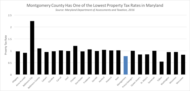 If there’s a silver lining to our property taxes, Montgomery County has one of the lowest rates in the state compared to other counties. In the crazy world of Maryland, tax rates and quality of life seem to be inversely correlated. Montgomery County has a much higher quality of life than the City of Baltimore, and yet Baltimore’s tax rates are nearly three times higher. While some might quickly use this as evidence that low taxes increase the quality of life, my sense it’s more about how those taxes are used by the government: police and fire, schools and libraries, or parks and recreation. More on that in a future post.