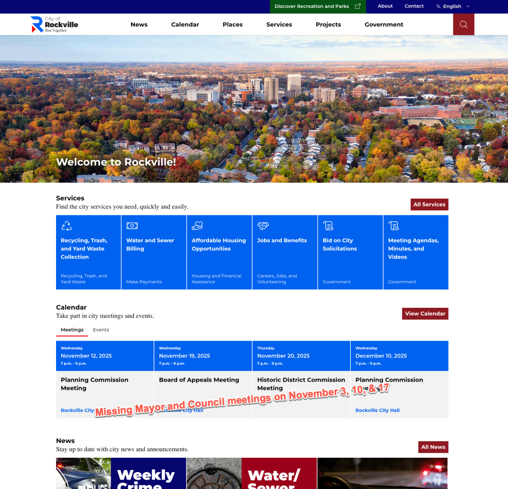 Rockville recently launched a redesigned city website with a fresh look and a more user-friendly layout. The home page now highlights key services—trash pickup, water billing, affordable housing, and city jobs—making it much easier for residents to find the information they use most often.
