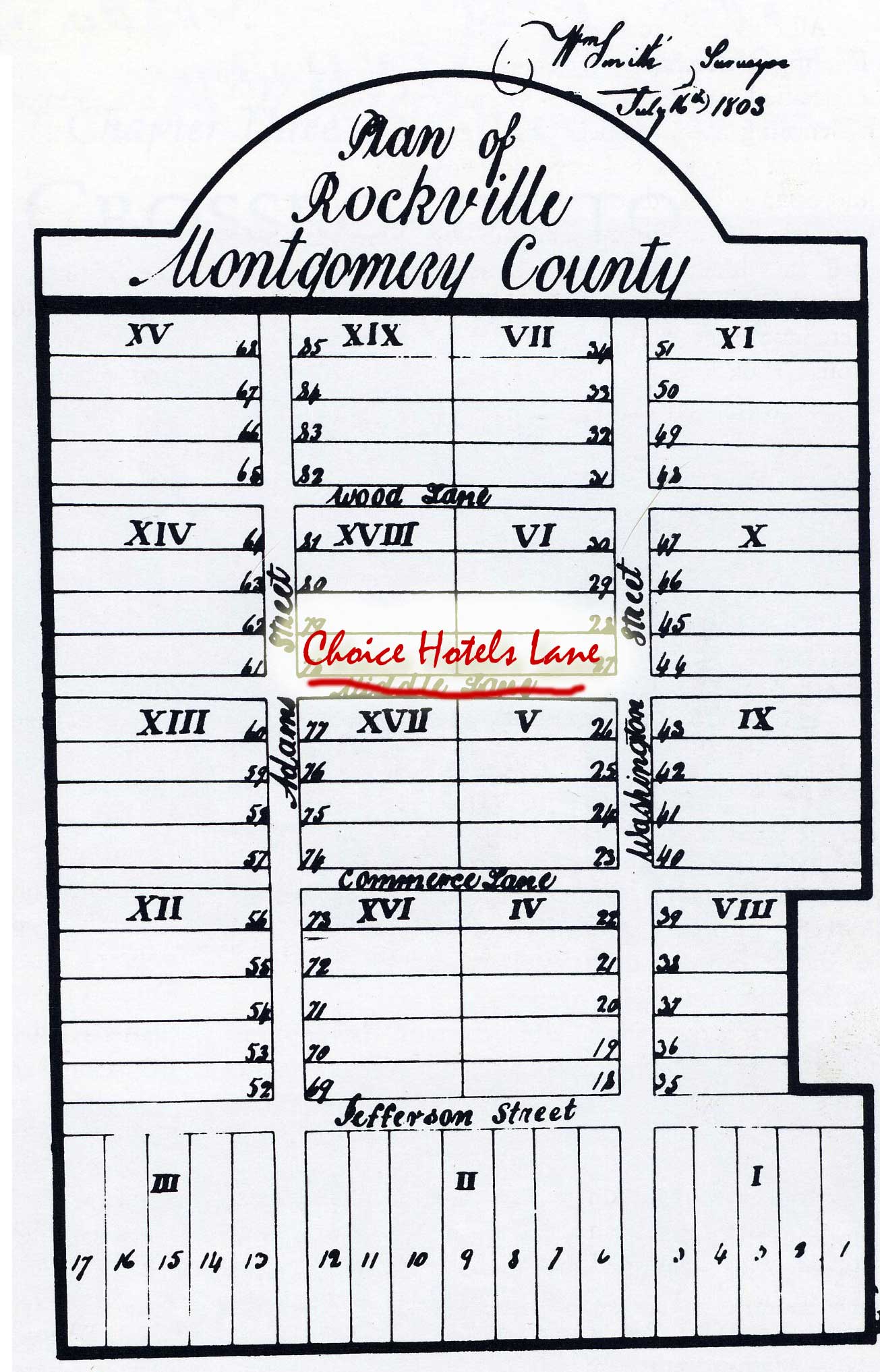 - it changes the name of an historic street, indeed, the name of a street that’s been part of downtown Rockville since 1803, when the first map of Rockville was drawn. Let’s see, which has the better track record? Middle Lane has been around for more than 200 years while Choice Hotels has been around since 1981.