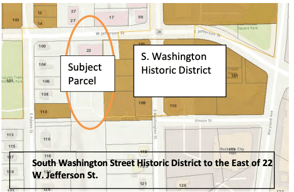At its Thursday, October 21, 2021 meeting, the Rockville Historic District Commission will discuss conversion of an office building at 22 W. Jefferson into a multi-unit residential building and the demolition of 1800 and 1818 Chapman Avenue to construct a multi-unit residential building near Twinbrook Metro. On the Consent Calendar (items approved without discussion) are no items.