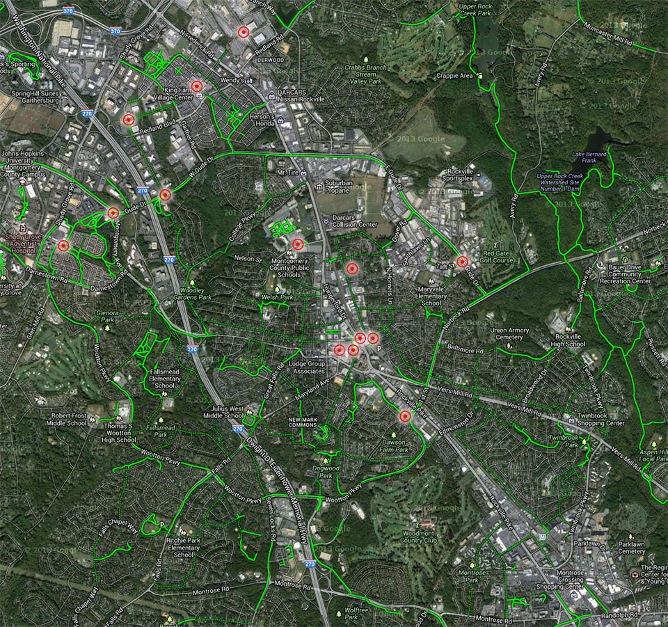 I’ve plotted these locations (plus Shady Grove Metro, which is outside of Rockville but will be part of the BikeShare network) on a bike-route-version of Google Maps to better understand the impact on and benefit to Rockville. Google Maps can identify bike routes, with a Continue reading →