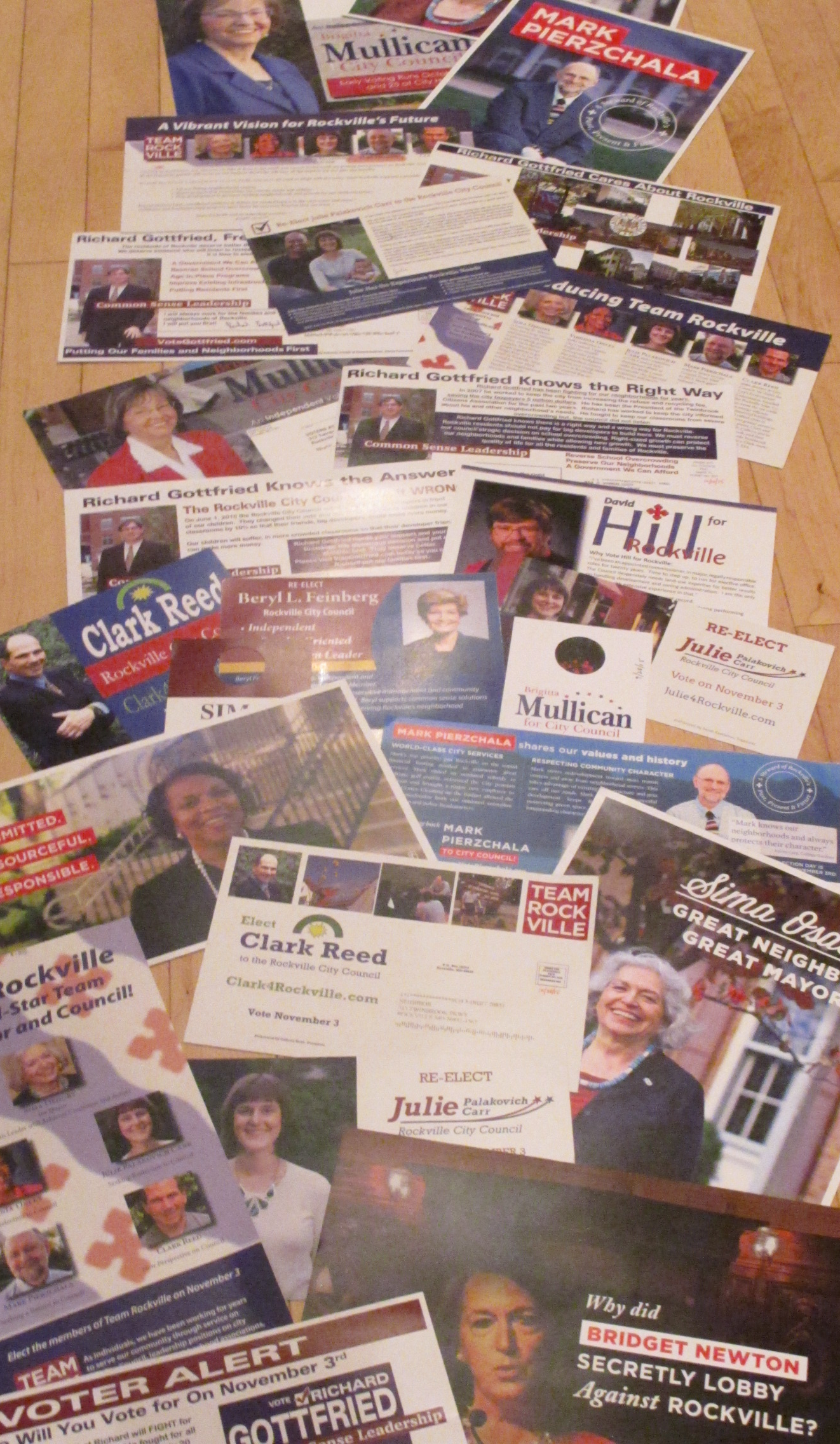 Without an independent newspaper with an investigative reporter, this year has been a particularly challenging one for both candidates and voters. In the last election, we had the Gazette and Rockville Patch who were willing to investigate claims and counterclaims, serving as an informal arbiter of disputes. With them gone, candidates have had to rely heavily on mail to reach voters and I’m guessing about 30 mailers have reached voters this season. Of course, these mailers are biased towards the candidate who sent them and voters are unsure what to believe. Blogs like this one are helping to fill the void.