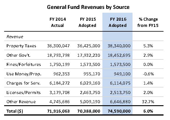 In elections, taxes are often a hot-button issue and that’s no different in the current Rockville Mayor and Council campaign. Taxes are are the largest source of government revenue and directly affect most residents and businesses, but they aren’t the only source. For Rockville, those sources include fees, permits, fines, licenses, investments, and overhead. As you can see in the chart from the City’s FY2016 adopted budget, property taxes contribute 51 percent and “Other Gov’t” (which consists of highway user taxes and income taxes) is 25 percent.