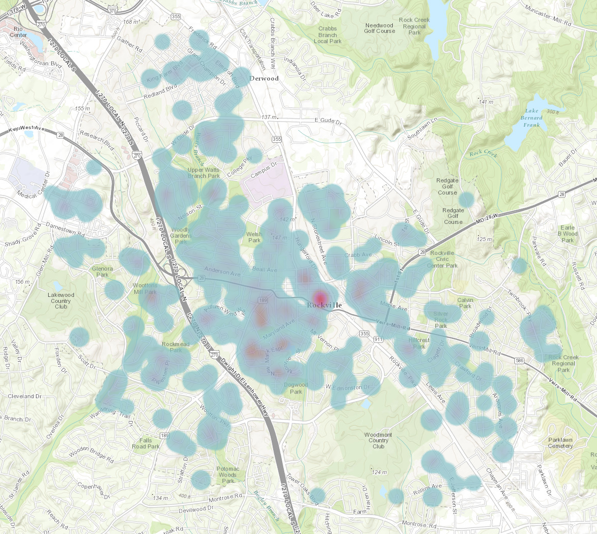 Early voting attracted residents from throughout the city, although there was a bit more activity from downtown and the West End, as can be seen in the heat map (blue being lowest to red being highest). Neighborhoods much further away, such as Montrose, Falls Grove, Twinbrook, and King Farm, participated significantly as well. Anecdotal reports from poll workers suggests that these voters had firmly decided on their candidates, which suggests that Election Day will mostly consist of the undecided.