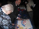About 100 people gathered in the Town Square last night in the swirl of people passing to the library, heading into stores, or choosing a restaurant for dinner. The event opened with an invocation and the singing of the National Anthem (thankfully by someone with talent), then about a dozen speeches and presentations came one after the other by various political leaders from the county, state, and federal governments, with a finale performance by The Finest! and the serving of cake and hot chocolate. It’s hard to make an anniversary exciting except with a concert, parade, or fireworks, but in this tight economy, we’re left with speeches and cake as public spectacles. Thank goodness the weather cooperated and it wasn’t too cold and it didn’t rain as predicted. It’ll be broadcast on Rockville’s Channel 11 but in the meantime, here are some pics in case you missed it: