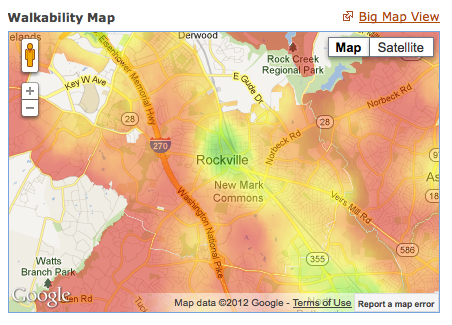 The City of Rockville recently received federal funds to develop “complete streets” near the Twinbrook and Rockville Metro stations, so scores for those locations (and pedestrians using those locations) should improve as a result. Any suggestions to make your neighborhood more walkable? Should walkability be a goal for Rockville?